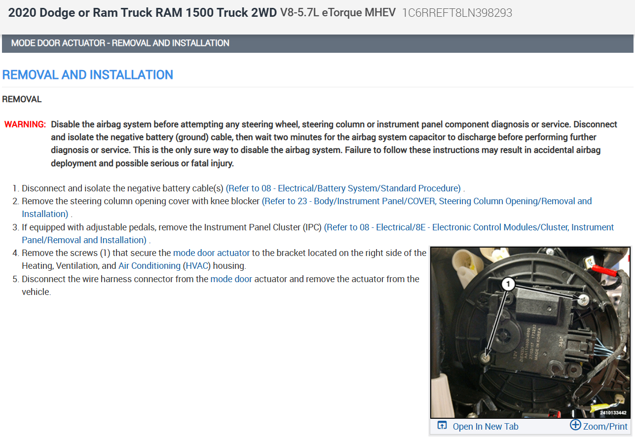 Okay, let's remove the actuator and work the blend door pivot by hand when the system is on low to see if you can actuate the door by hand. This guide will show you what I am talking about: