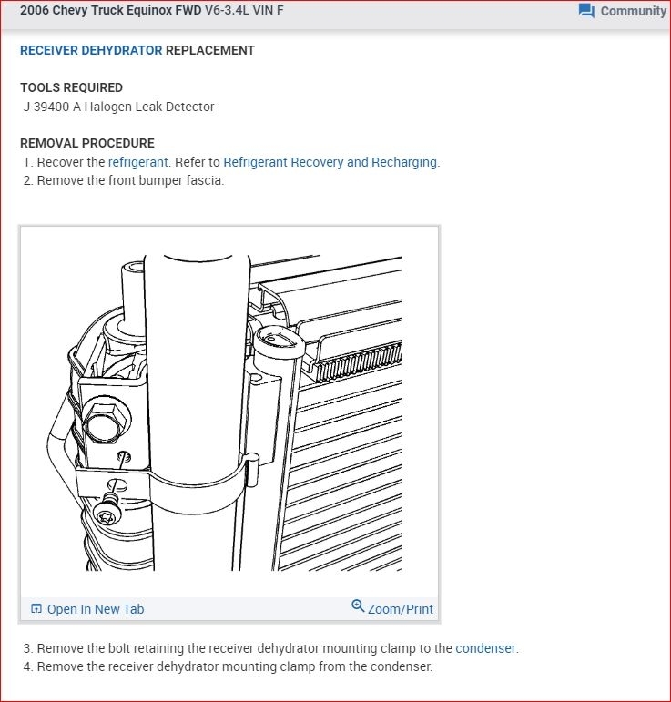 Here is the procedure for replace the dryer. Keep in mind you will need to evacuate the system before and after and pull it into a vacuum after you are finished. You need to make sure you do this after because you have to get the moisture out of the system or it will damage the compressor.