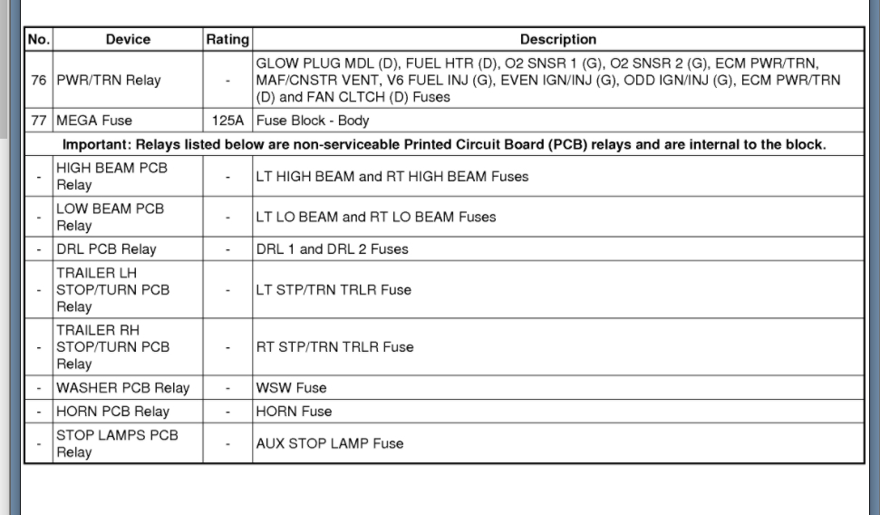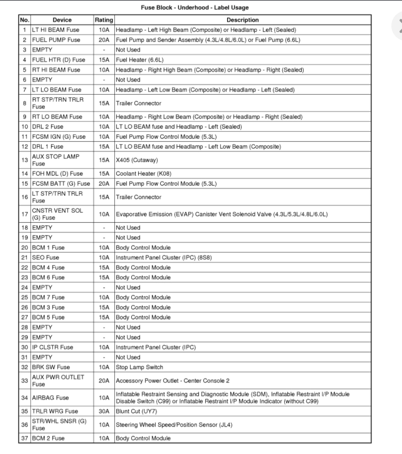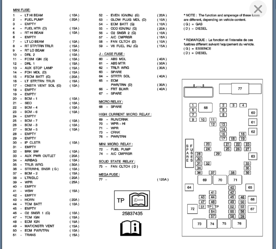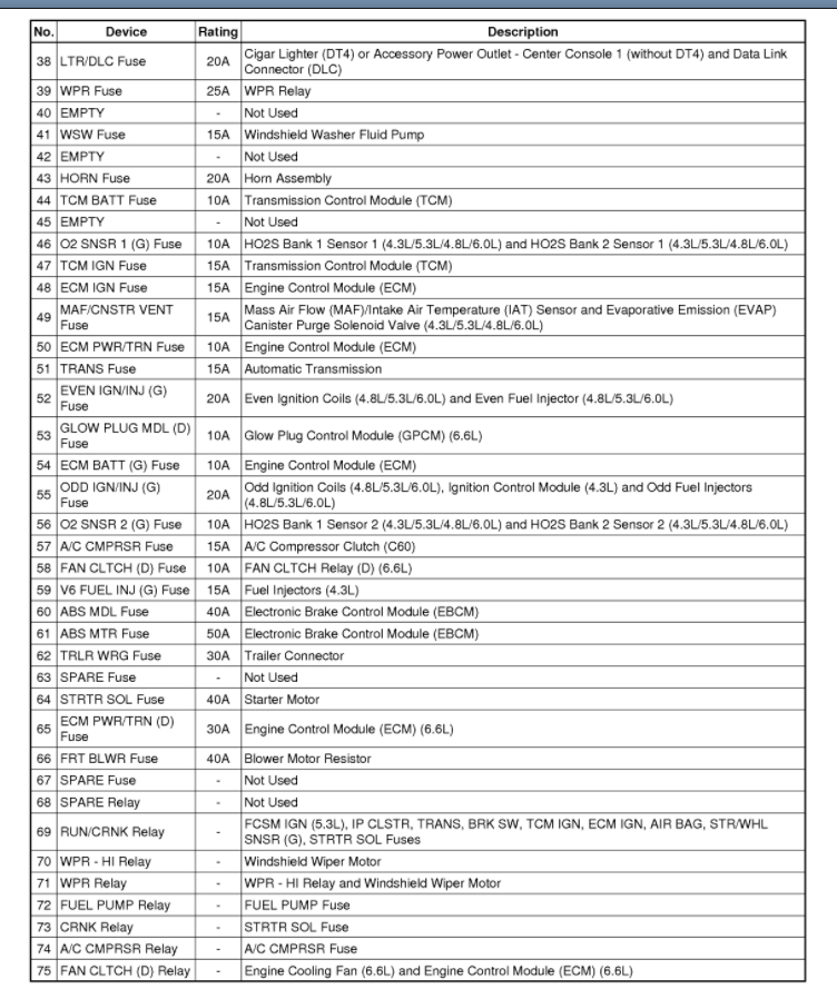 Below is a copy of the fuse layout. Thanks for using 2CarPros.