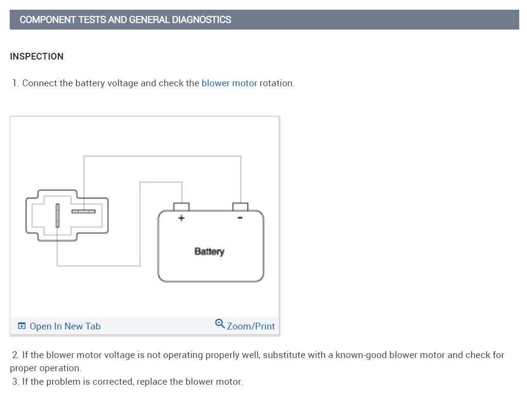 The 4th diagram is the blower motor connector, it can be tested with a test light or multimeter, just unplug the motor and check for power across the positive and negative pins of the connector with the air turned on. At high speed it should read around 12 volts. Or light a test light brightly.