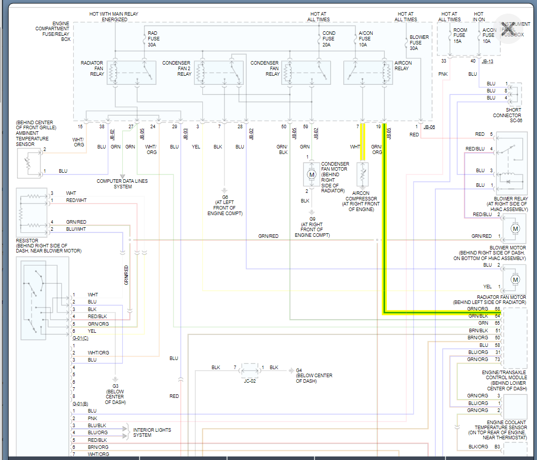 If it is not then we have a PCM or something else telling the PCM to not ground the relay like a pressure sensor or aircon module.