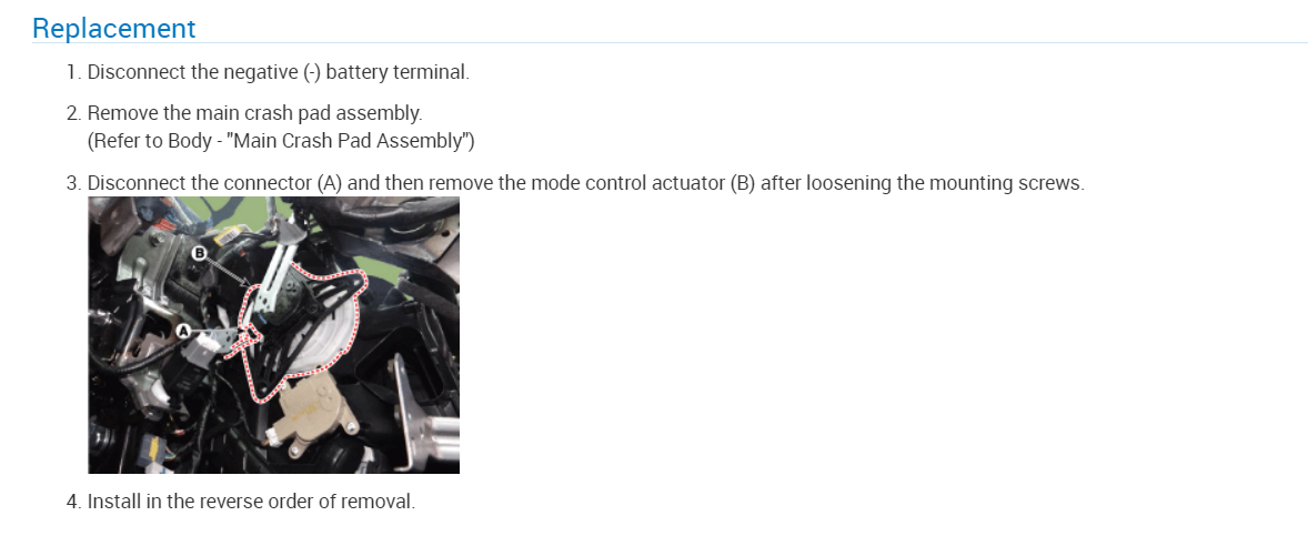 I had it tested, and they said everything is running fine, but it still blows hot air. There is a clicking noise coming from beside the glovebox when I turn it on. Someone said it was the Blend Door Actuator. How do I get to it to change it out?