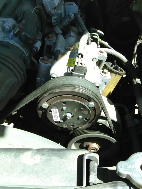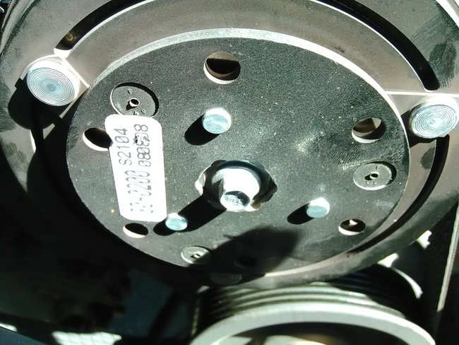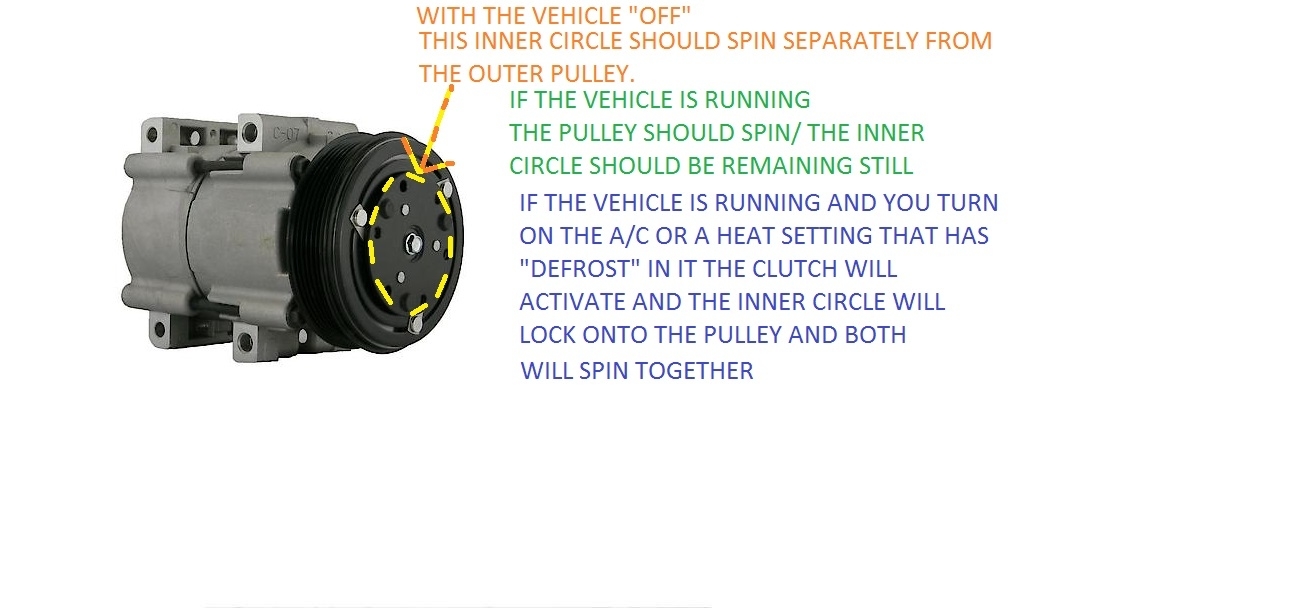 The center of the AC clutch is attached to the AC compressors shaft when the AC clutch engages it connects the out side pulley which is spun by the drive belt.unless it has a valve style compressor which the center of the pulley spins all the time.Until the valve activates the compressor.