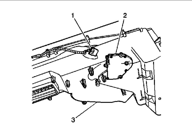 4. Remove the left air temperature actuator (2) from the HVAC module assembly (3).