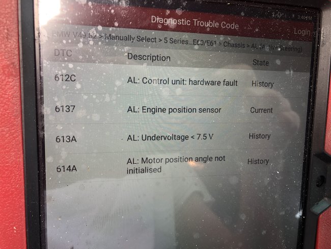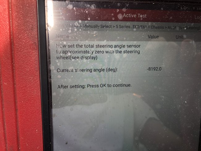 Active steering light on, tried to calibrate it but it wont do it. Here is the code. When it asks me to put the steering straight ahead and zero the angle, it is in the thousands, not as usual where its few degrees, and turning the steering does not change the value.