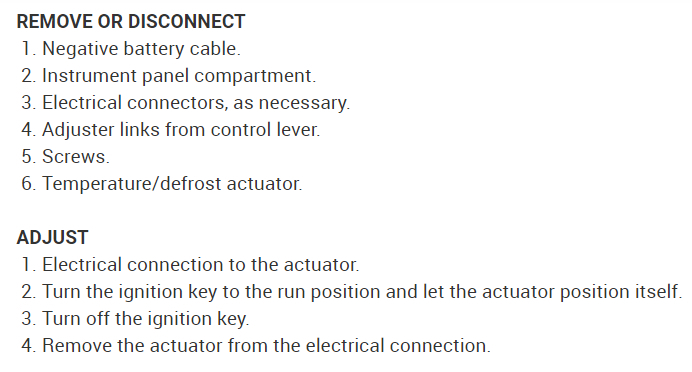 Vehicle Heating and Air Conditioning Air Door Actuator / Motor Service and Repair Procedures With Air Conditioner Only Mode Actuator