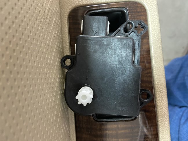 I have the car listed above "X". I have a loud clicking noise behind the glove box when starting the car, switching on the recirculating air button and switching it to defrost. It clicks about 15-20 times and then stops. Heat and A/C work fine. It is dual climate control and rear air in the roof. I removed the glove box and found the actuator that was exposed. When the car made the clicking noise it came from that part and I can feel the clicking vibration when I touch it. I replaced it and it did not solve the problem. Any suggestions? The part was an aftermarket Dorman, not genuine Ford. Would that make a difference? Could it be something else? The original part did not have any worn or missing teeth but the clicking and vibration comes from the corner where the round peg with teeth is located. Help! thank you.