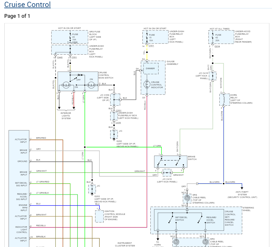 There are two fuses, but I would check the fuses brake light switch and clock spring through the steering wheel which can break causing the cruise control not to work anymore. Here is a guide the the cruise control wiring diagrams to help you fix the problem: