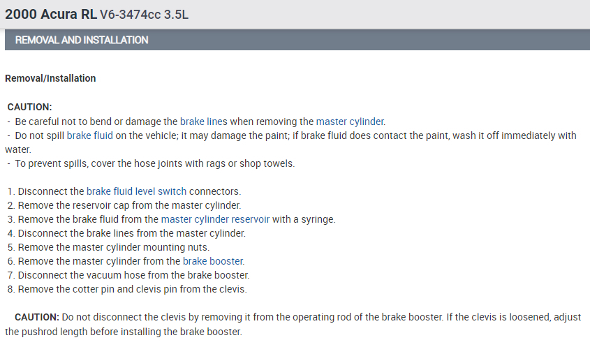 I have taken my ACURA RL in for brake repairs. So far, the mechanic is telling me I need a new brake master because it is leaking.