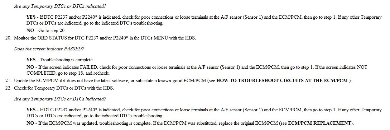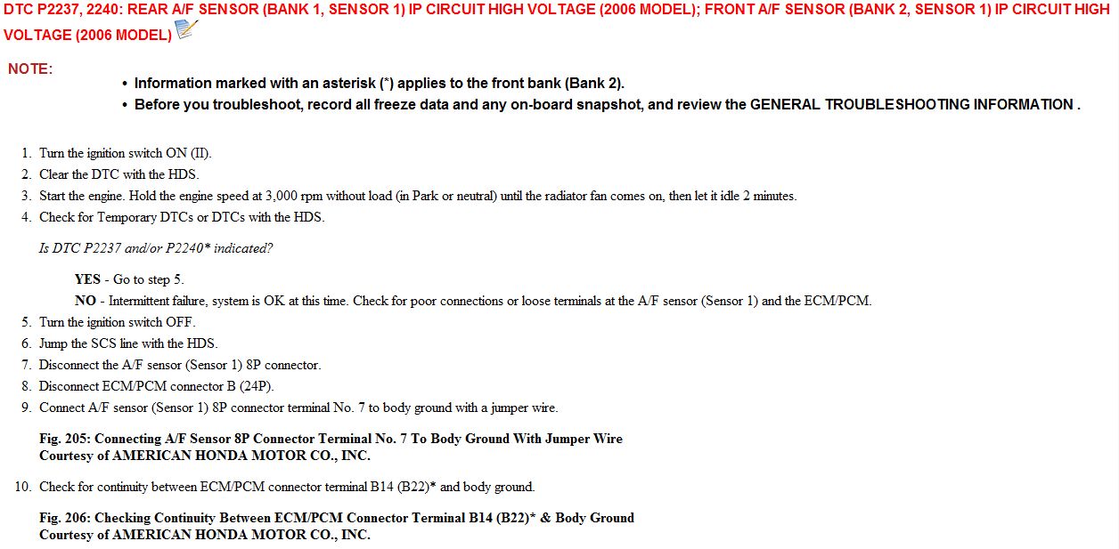 DTC P2237, 2240: Rear A/F Sensor (Bank 1, Sensor 1) IP Circuit High Voltage (2006 Model); Front A/F Sensor (Bank 2, Sensor 1) IP Circuit High Voltage (2006 Model)
