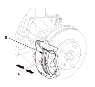 Check the thickness (A) of the inner pad (B) and the outer pad (C). Do not include the thickness of the backing plate.