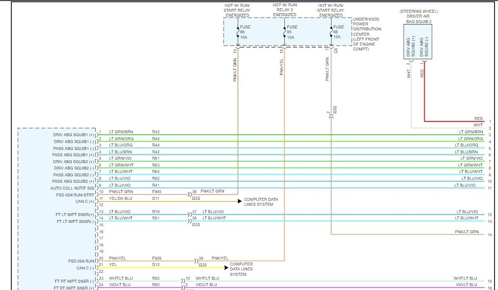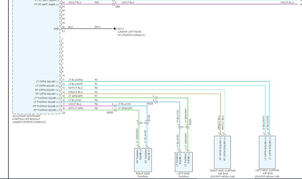 The ORC sends out a 40 mA diagnostic current on each squib voltage supply circuit at power up and every 100 ms thereafter while the ignition is on.