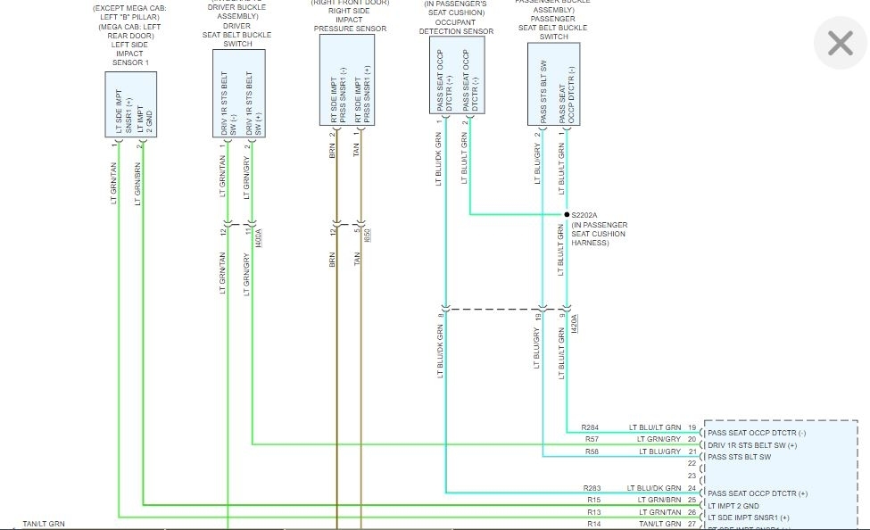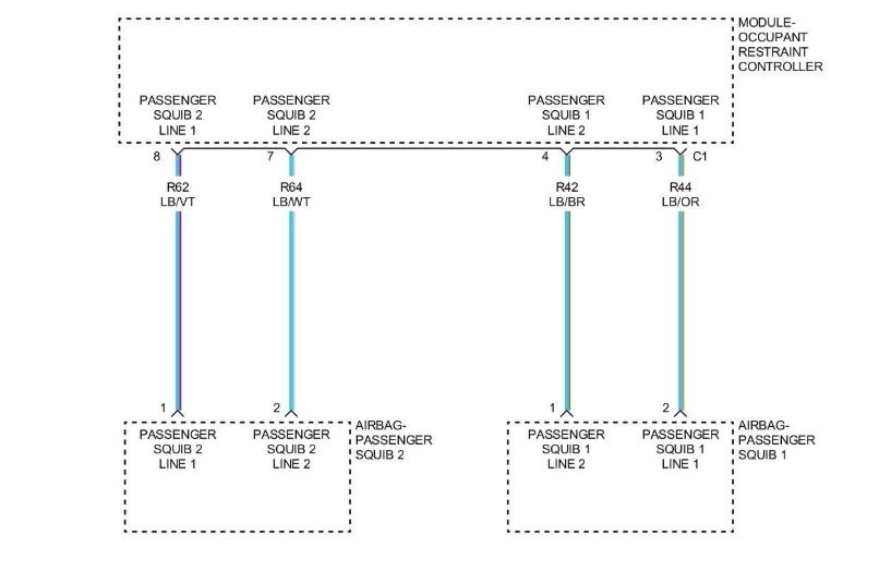 Repair the (R42, R44) Passenger Squib 1 circuits for a short to ground.