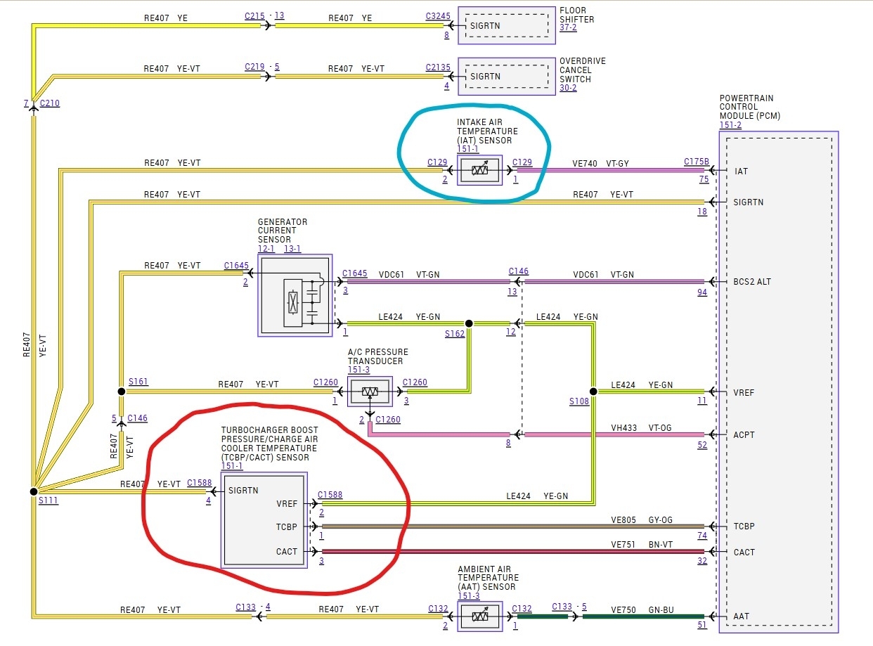 Critters ate through some wires. I have fixed all except the purple and yellow ones from the air charge sensor. I don't see where they go into the harness or wherever. I see no broken wires to connect them to.