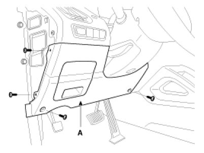 2. Remove the crash pad left side cover (A).