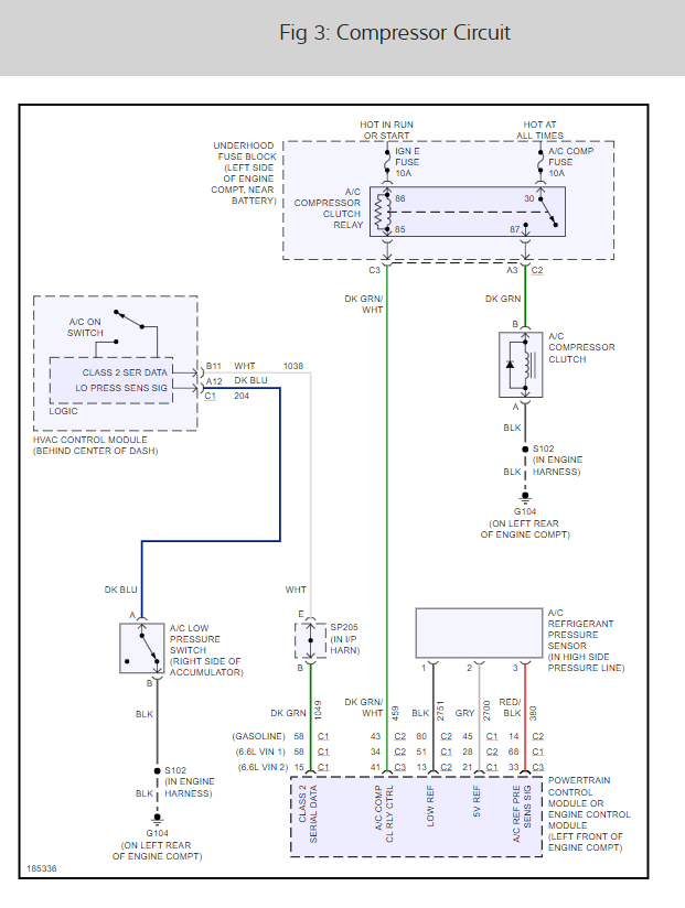 I’ve researched into ambient temperature switches and there is quite a few temperature switches on the truck and I don’t know what all actually sends the signals back and forth to let the compressor cycle other than that switch.