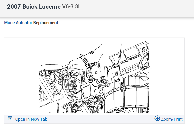 Yep, this is common when the mode actuator goes out, here is the location so you can change it out. It looks like you will need to remove the glove box to get at it. Check out the images (below). Please let us know what happens.