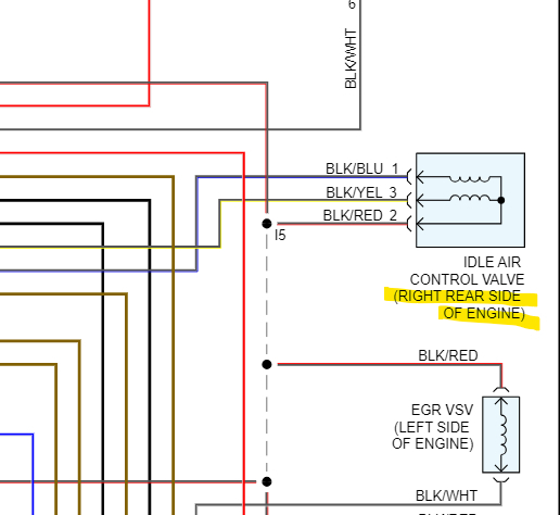 Below the diagrams will show where the Idle air control valve is and if you have trouble finding it, there is a wiring diagram (4th) that will help, its a 3 wire connector and the wiring diagram shows the colors of those wires. But look for any broken or leaking hoses or lines going to the intake manifold.