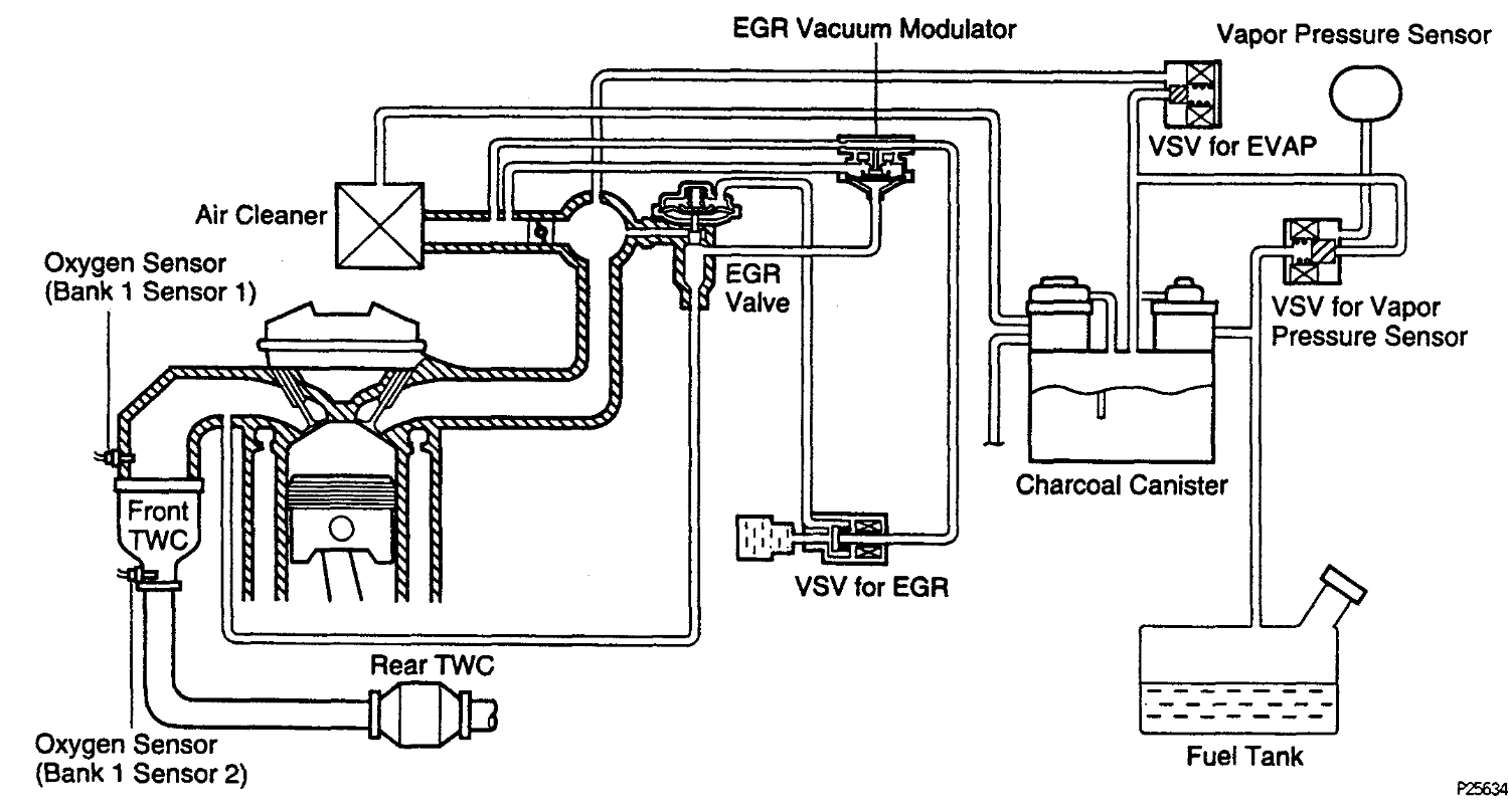 there is also a diagram of all the vapor and vacuum hoses (5th) that go to each component in the engine compartment.