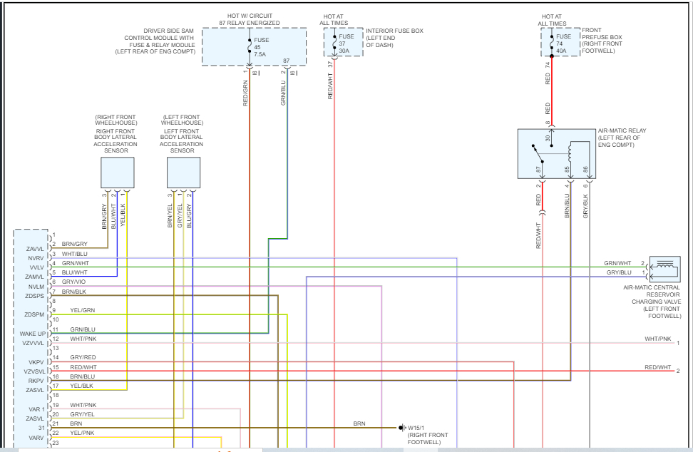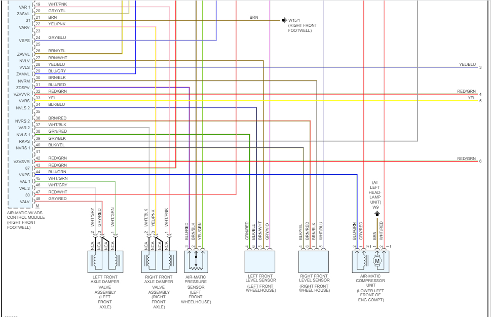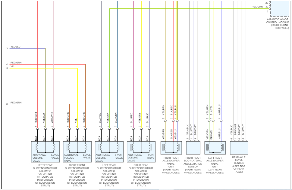 I tried looking up each code and they weren't listed in my manual. However, I noticed that they all indicate an open circuit. Have you checked for damage to the air-matic control module in the vehicle?
