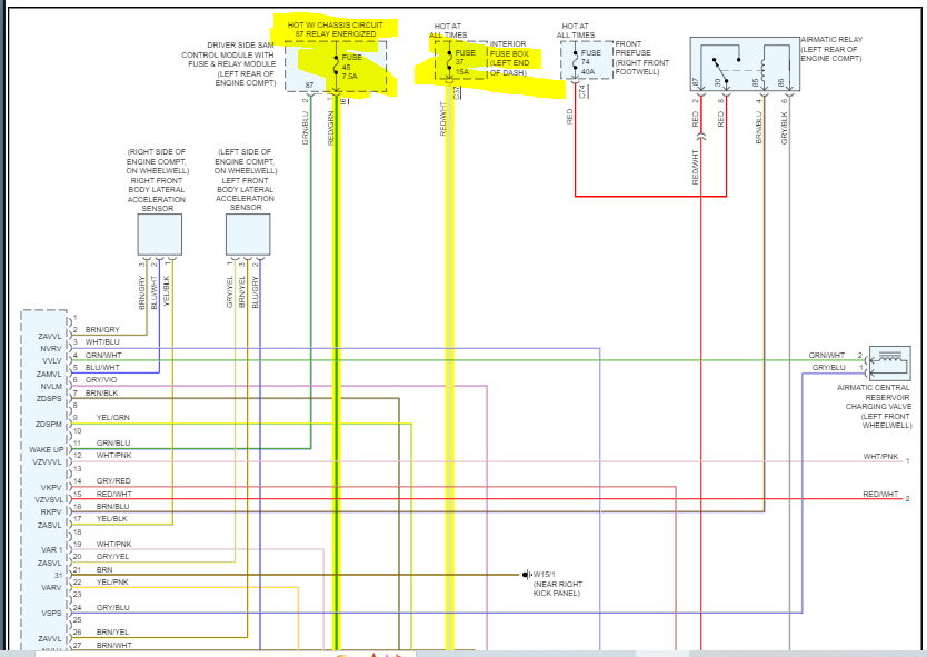 All good by module. Looked at front sensors on top of strut found that both the air hoses and the electrical connections are off on both struts. They have been replaced by a conversion kit on all. But they did not Add the light fix kit. I know where to buy these. Bit pricey but not as high or a headache as replacing air struts.