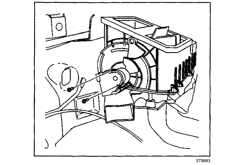 3. Remove the mode actuator mounting screws from the HVAC module.