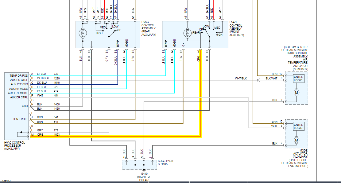 Okay, the problem with your vents is probably going to be with your mode door actuator. In the diagrams down below I have included the factory directions for the removal and installation of the mode door actuator for your vehicle. I have also included a wiring diagram for your rear blower motor as well as a guide for how to inspect ground connections. The problem for the rear blower motor could be a bad ground connection at ground #408 which is located on the right D pillar of your vehicle. Please go through these guides and get back to us with what you are able to find out.