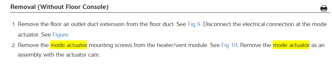 There is a mode door in the system that is commands vent operation. I attached the procedure for removal with some pictures.
