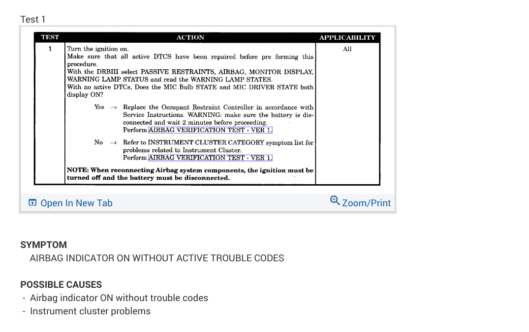 In the diagrams down below I have included the airbag light illuminated diagnostic troubleshooting guide for your vehicle. Please go through this guide and get back to us with what you find out.