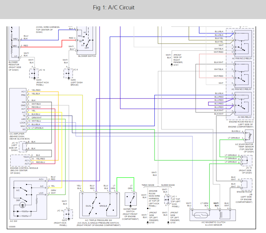 So based on that, we are going to have to check the voltages at the AC amplifier with the AC on. Basically we need to see what voltage is there and then that will tell us what direction to go. It is much more effective then just inspecting the wiring or checking different circuits looking for an issue.