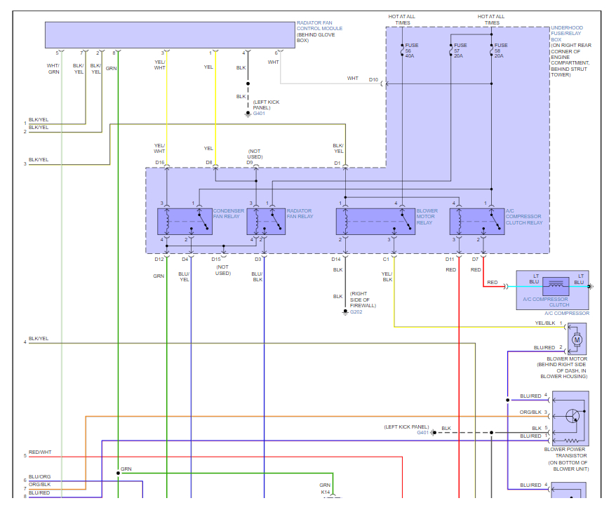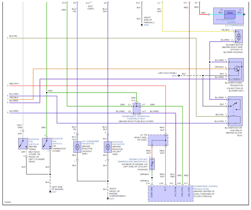 Compressor resistance is 5.1 ohms and engages when direct power is applied. Radiator and condenser fans are working. Assistance with a wiring diagram is much appreciated. Respects!