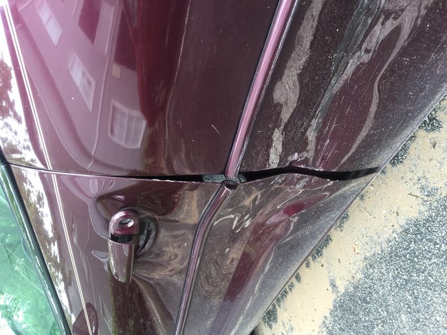 The drivers side door is bent slightly out of shape due to a recent accident so that the edge of the door is slightly exposed to the outside. We live in a very humid/rainy climate so maybe the weather has some sort of effect on it?