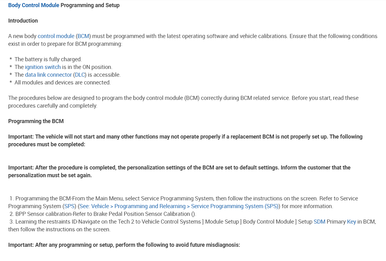 The procedures below are designed to program the body control module (BCM) correctly during BCM related service. Before you start, read these procedures carefully and completely.