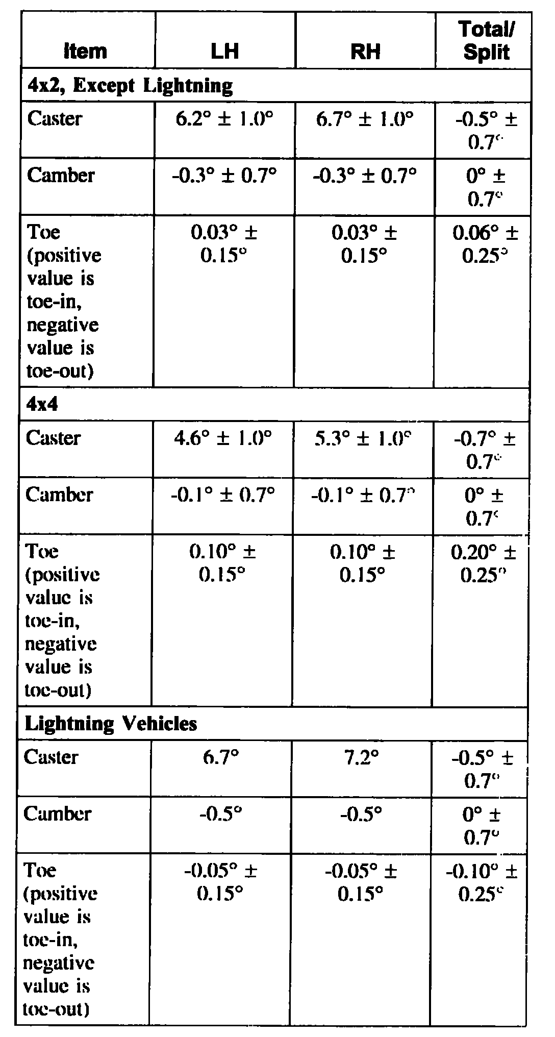 Front end alignment specs
