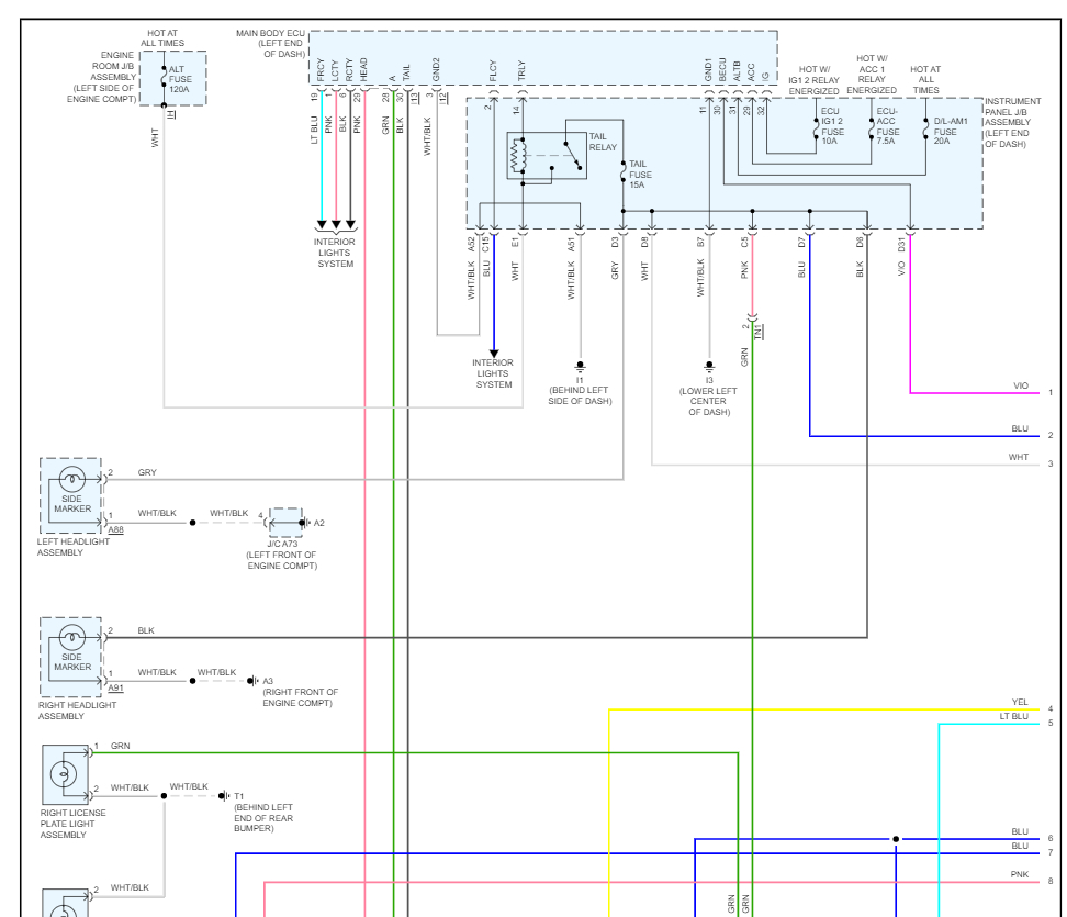 I have also included the location of the main body ECU, which is what I am leaning towards, and the exterior light wiring diagram so you can see how the system works. You can get a rebuilt unit that is preprogrammed by searching Google or eBay. Please let us know what happens.