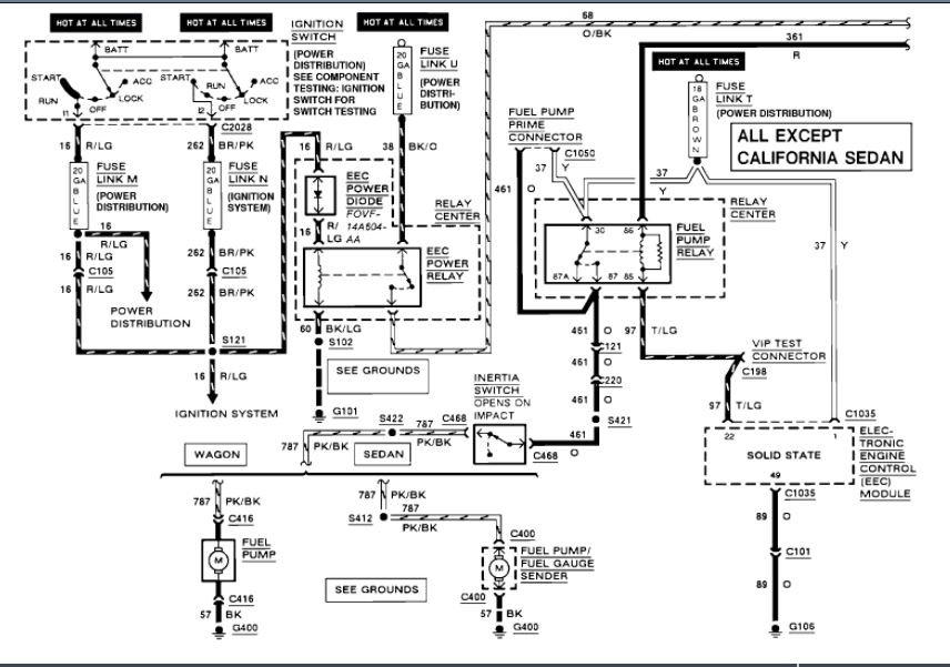 CAUTION: Fuel supply lines will remain pressurized for long periods of time after engine shut down. This pressure must be relieved before servicing of the fuel system is begun. A valve is provided on the throttle body for this purpose. Remove the air cleaner and relieve system pressure by using Rotunda pressure gauge tool T80L-9974-A or equivalent and drain the system through the drain tube.