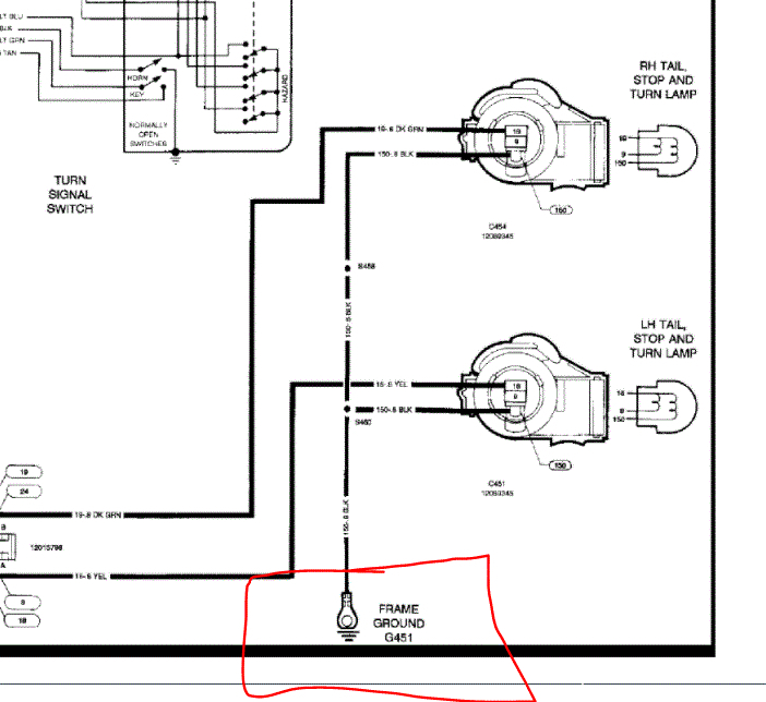 If nothing in the rear works, signals, brake lights, parking lights, the one thing I see they all have in common is they use the same grounding point. What I need you to do is check the black wire on either side for continuity to ground. I attached one pic below. Each system has a different schematic (signals, brakes, tail lights) but they all show the same ground.
