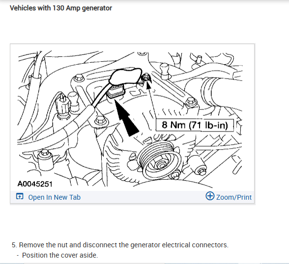 If you look below, I have attached the directions for replacing the alternator. Note that there are two different alternators that could have been used. One is a 130 amp, and the other is a 200 amp. You may want to remove it and take it with you when you get the new one. That way, the correct amperage can be obtained.