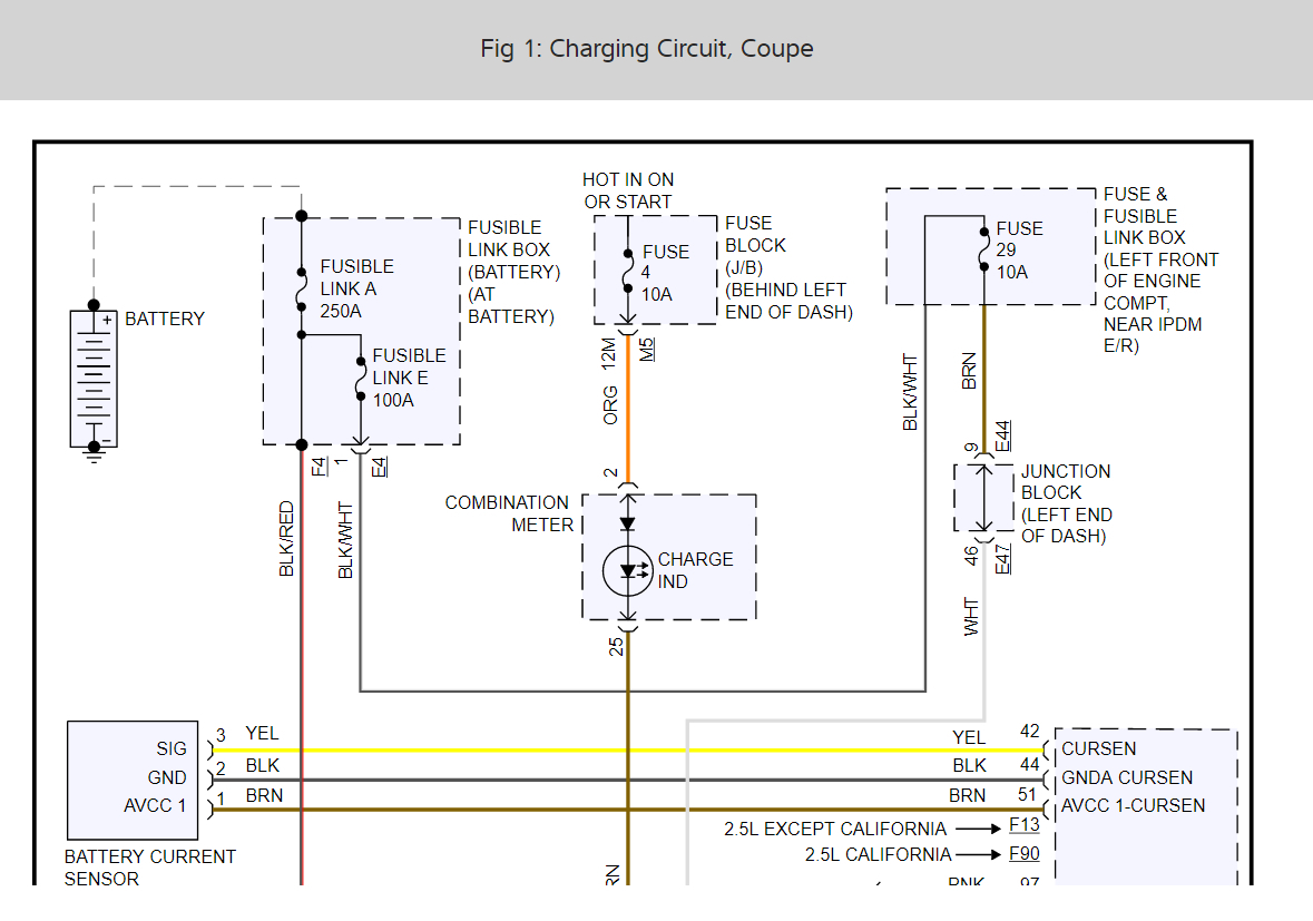 I have also included in the diagrams down below a wiring diagram of your vehicle's charging circuit. Please go through these guides and check these systems out, and get back to us with what you are able to find out. We can go from there.