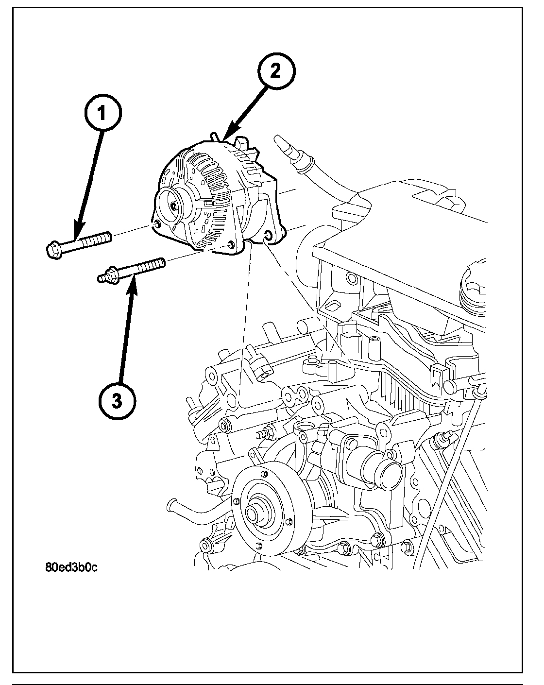 1. Position generator to upper and lower mounting brackets and install upper bolt and lower bolt/nut.