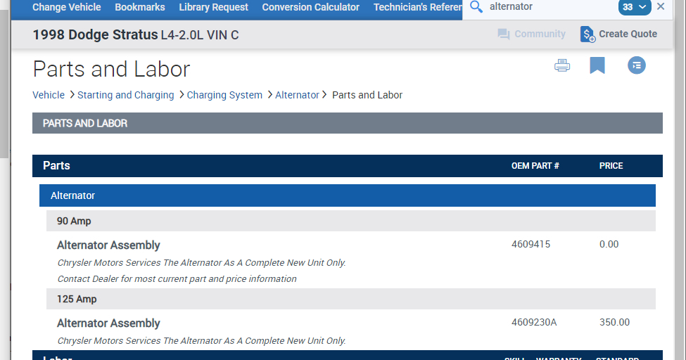 Below you will find the process on how to replace the alternator and part number that you will need.