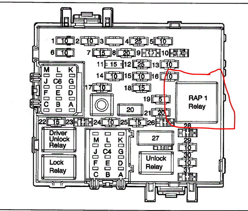 As far as the RAP, that is energized until you have the key removed and open the door. If the door isn't opened, it will power certain accessories until a predetermined amount of time passes. Since there isn't one, I have no idea if the prior owner is powering some things all the time. The RAP continues power to things such as the power windows, radio, Onstar and so on. Do any of those things remain powered after the key is in the off position and prior to opening any doors? Note there are two RAP relays. See pics 1 and 2 for locations.