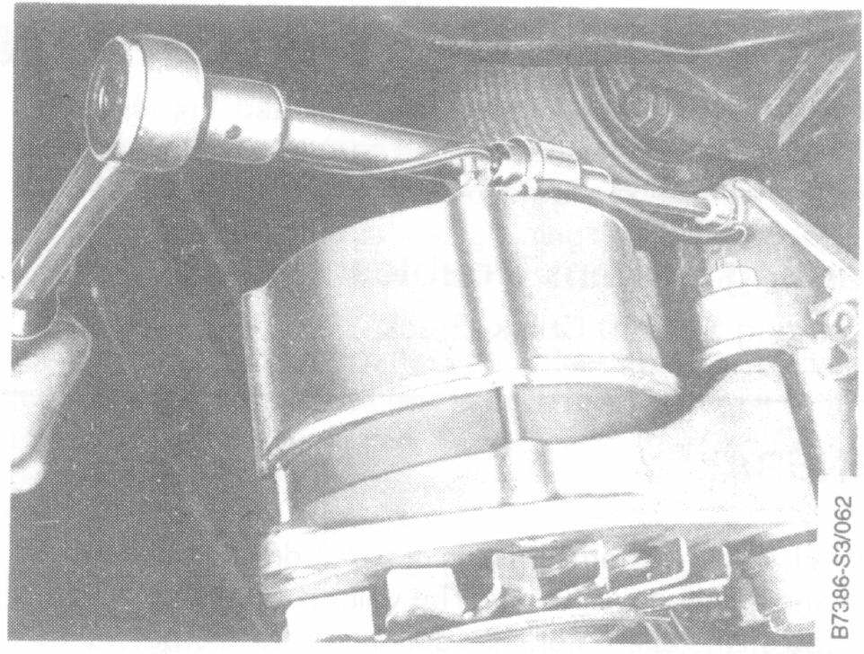 5. Pivot alternator away from block to allow access to alternator bracket mounting bolts.