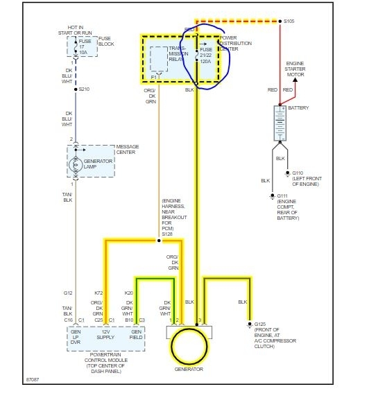 The voltage isn’t going up from 12.2 volts when i turn it on so the alternator is not charging the battery. How do i check if the alternator is getting enough power from the connector to work? What should the voltage from the gen field terminals and b+ wire read and how should i interpret that? Where is the alternator fuse?