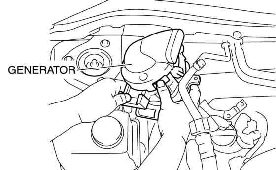 - When the battery cables are connected, touching the vehicle body with generator terminal B will generate sparks. This can cause personal injury, fire, and damage to the electrical components. Always disconnect the negative battery cable before performing the following operation.