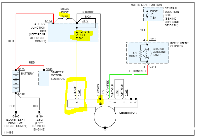 I've already replaced it with a new one twice. I checked the big fuse up under the hood by where the relays and fuses are cleaned it all up. I have continuity between it have continuity between the black and yellow wire to the battery positive, but I've got no voltage to the yellow and white wire on the alternator. I think I'm supposed to have voltage there is anybody know.