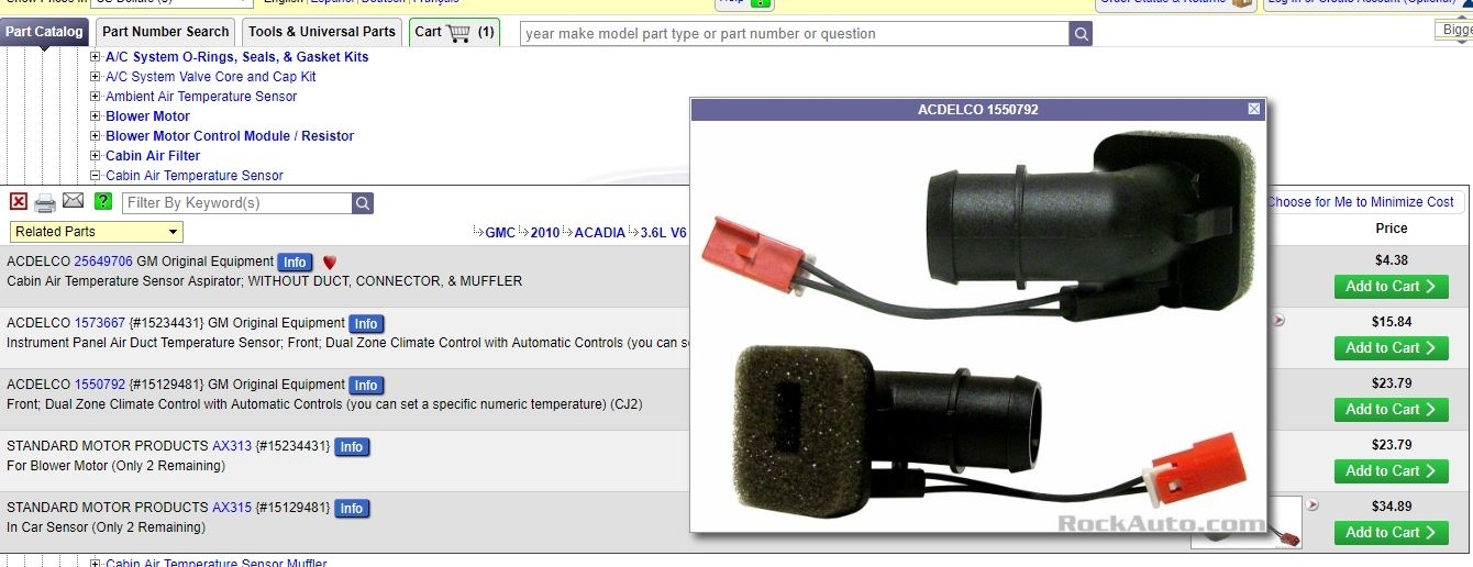 So the inside sensor controls the display for the outside temperature? What is the part called specifically? There are three inside climate control parts listed on rock auto.