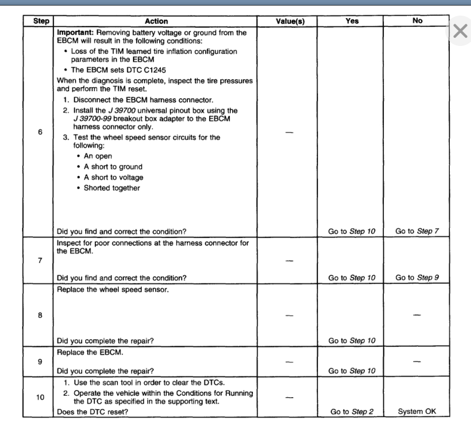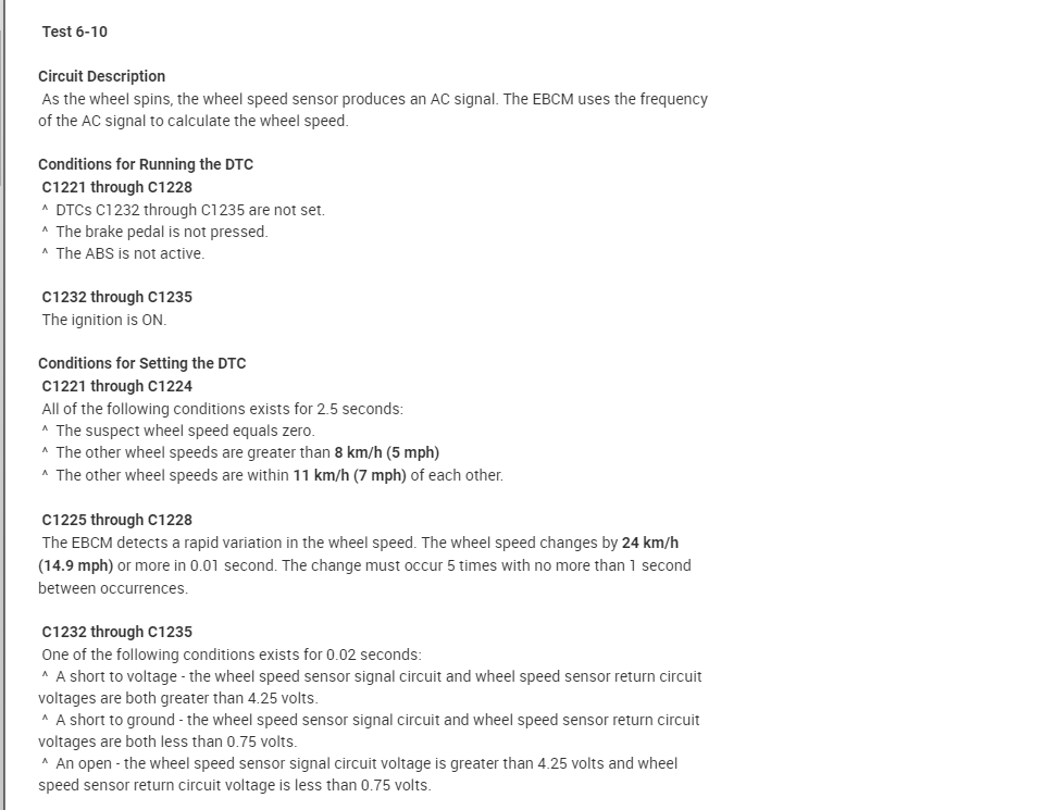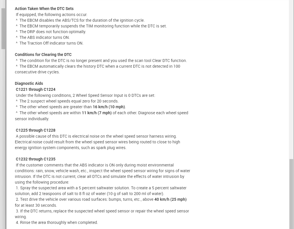 Here is a funny one that has kind of got me puzzled. I checked all the ABS wiring from ABS module to each wheel sensor. The wiring checks out, did a continuity check on each wire all the wires check out. I also check the resistance to each sensor left right 1083 ohms left front 1048 ohms Rr 1044 ohms right front 1240 ohms. I replaced the right front hub going to replace the left front hub in the next couple days. What is strange is if I just connect the left front speed sensor to the harness I get a ohms reading as soon as I put the connector back in place to hold the connector I have an open circuit. I am pretty sure it is the left front speed sensor that is causing all my problems. I do not have a scan tool so I had advance Auto check the codes the following codes are in the computer C1226, C1232 and C1248. The last code is kind of worrisome I do not know if it is because of the traction control or the speed sensor causing the issue or is it more serious and the ABS module is bad? So any input would be welcomed. Thanks