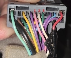 1 (pink) seems to be ground. If I put the multimeter on sound, I get sound if i touch 1 and 2 or 1 and 3.