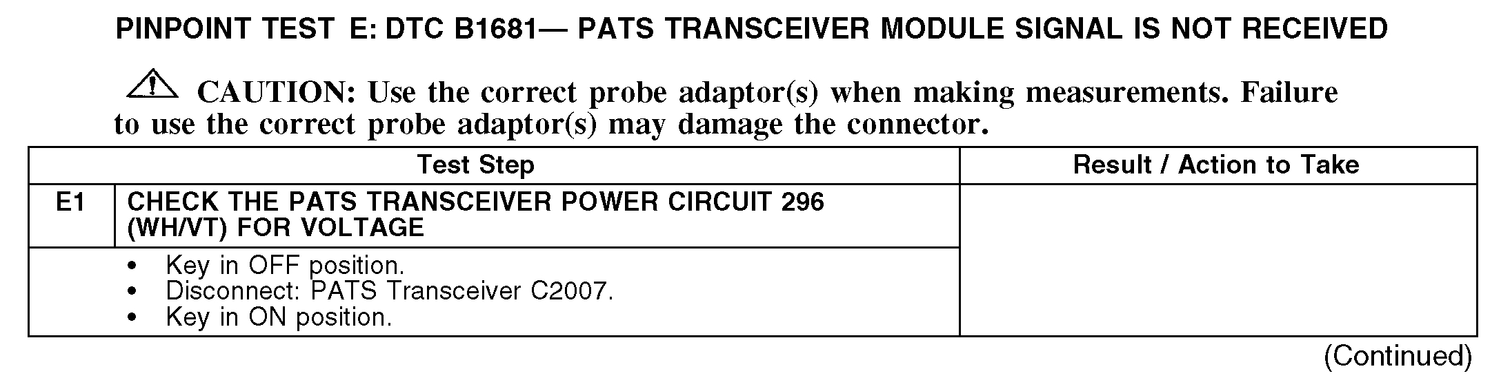 Test E: DTC B1681 - PATS Transceiver Module Signal Is Not Received